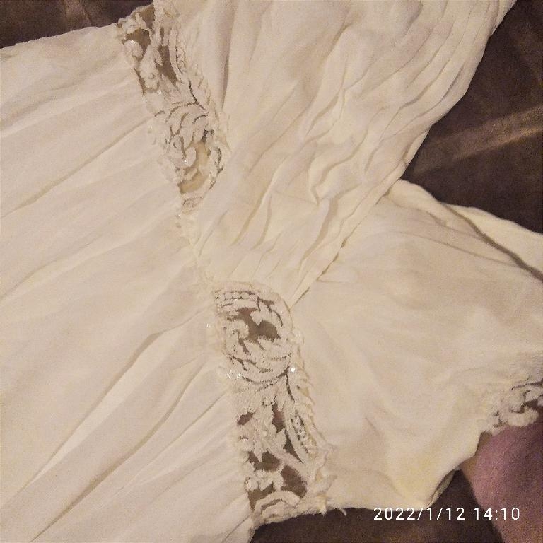 πωλείται νυφικό φορεμένο για 4 ώρες μόνο. Είναι μεταξωτή μουσελινα και έχει δαντέλα στη μέση και στον έναν ώμο. νούμερο L-XL, κατάλληλο και για εγκυμοσύνη. (φορέθηκε σε περίοδο εγκυμοσύνης στις φώτο) 400€ συζητήσιμη (ραφτηκε για τη συγκεκριμένη περίσταση 700€) Δίνεται δώρο ιβουάρ γουνακι κοντό και λευκές γόβες migato No41Πληροφορίες