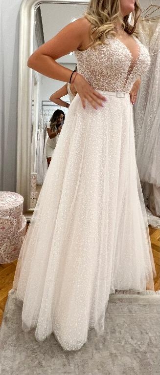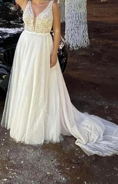 Πωλείται νυφικο αμερικανικού οικου χρώματος ιβουάρ και σε γραμμή Α, μεγέθους S/Μ με ρυθμιζόμενο κλει[...]